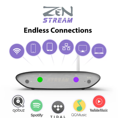 ZEN Stream is a true ground-up design by iFi — the hardware and software implementation is quite exceptional: Two SuperSpeed USB3.0 ports with Active Noise Cancellation II, S/PDIF out with the iPurifier built-in, iFi software developed with Volumio open-source as the starting point, then coded and optimised by us to achieve the purest streaming software bar none. These are some of the factors behind why the ZEN Stream is at the cutting-edge handling PCM384/DSD256 on LAN and WiFi (802.11n, with 100Mbps on 5Ghz).